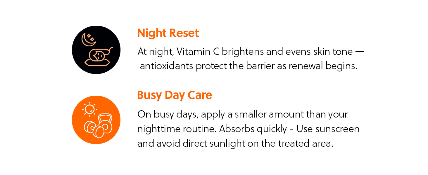Gently massage and pat until fully absorbed. Use AM & PM. In the morning, follow with sunscreen.